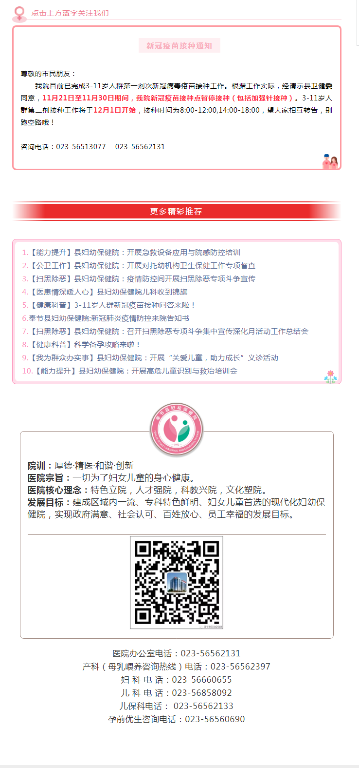 【重要通知】奉节县妇幼保健院新冠疫苗接种点暂停接种