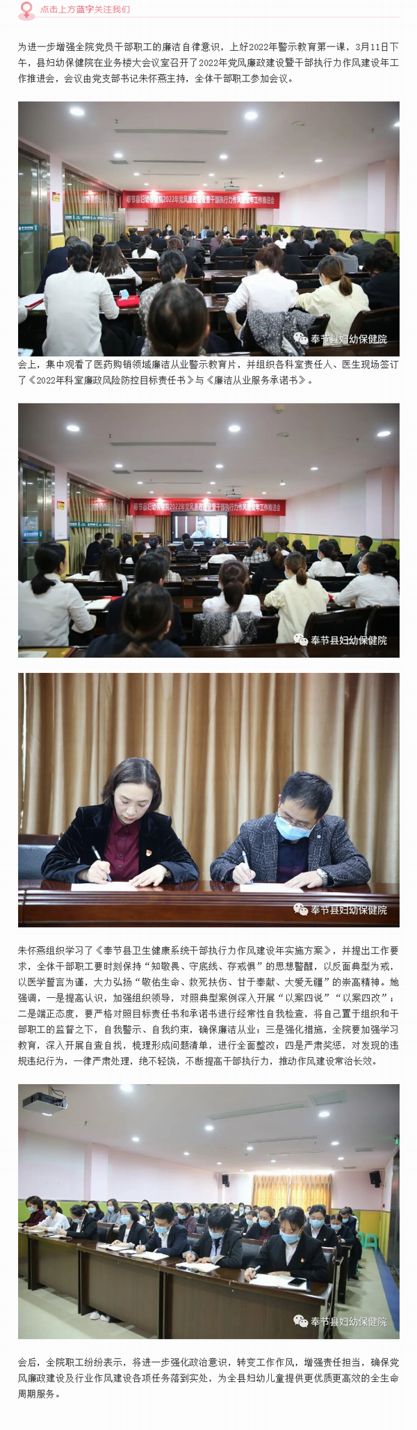 【党建工作】县妇幼保健院:召开2022年党风廉政建设暨干部执行力作风建设年工作推进会