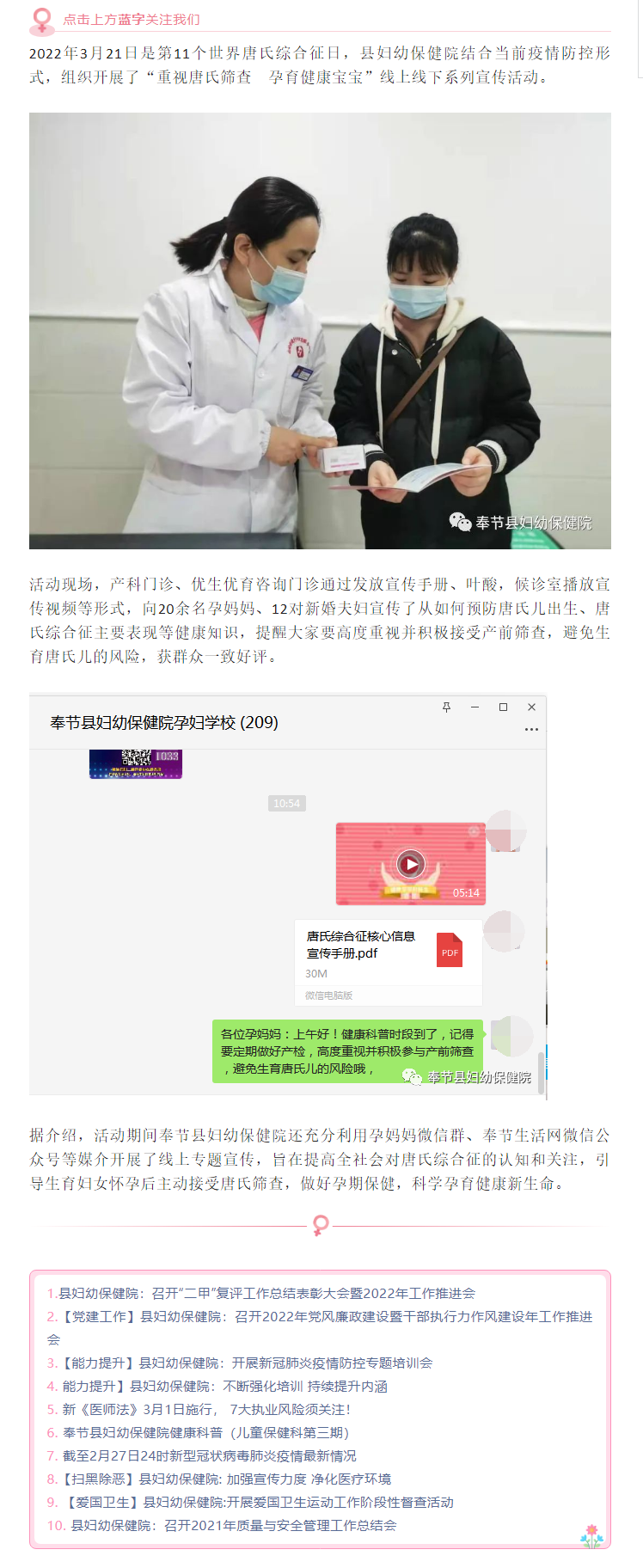 【主题活动】县妇幼保健院:开展“世界唐氏综合征日”宣传活动