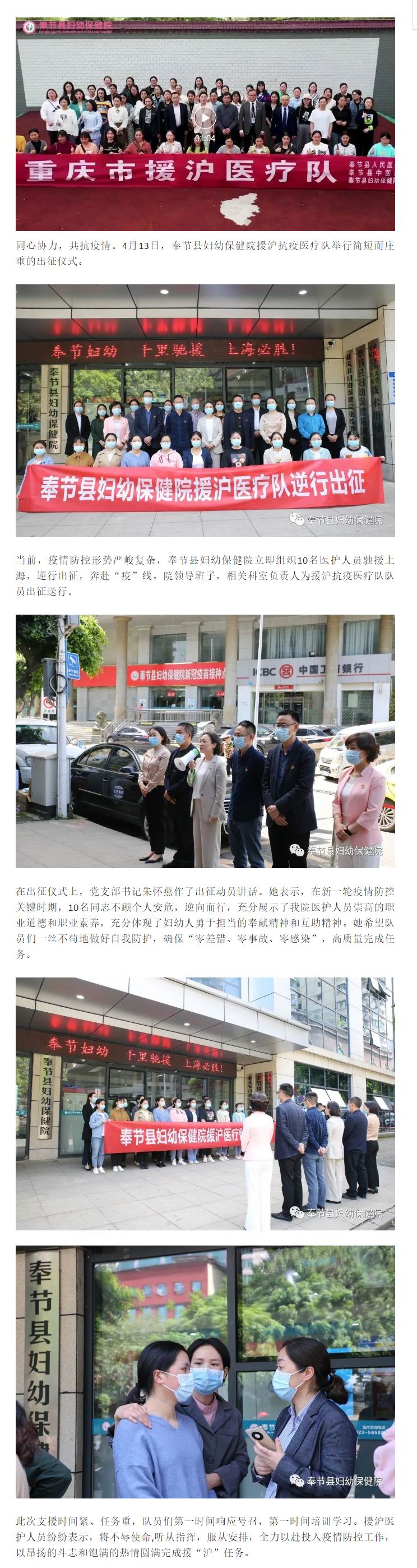 奉节妇幼千里驰援 守“沪”医疗队出征