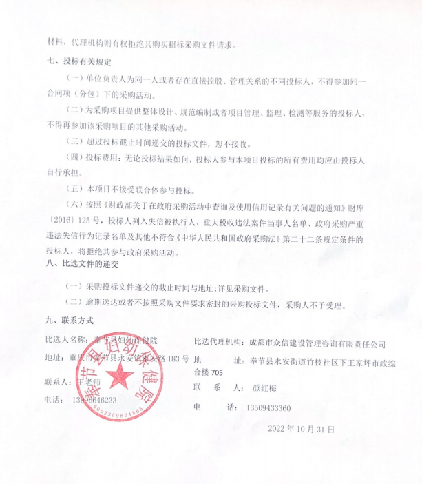 奉节县妇幼保健院门诊楼改建扩容工程(一期)中央空调项目采购公告